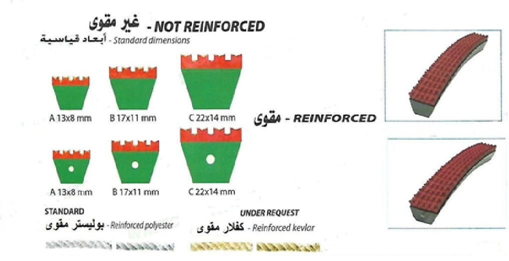 2-بدون تيلة Reinforced Not كما تتوفر هذه السيور بوجود طبقة محببة من الكاوتشوك الطبيعى والتي تعطي للسير عمر اطول وتساعده في مقاومة الانزلاق